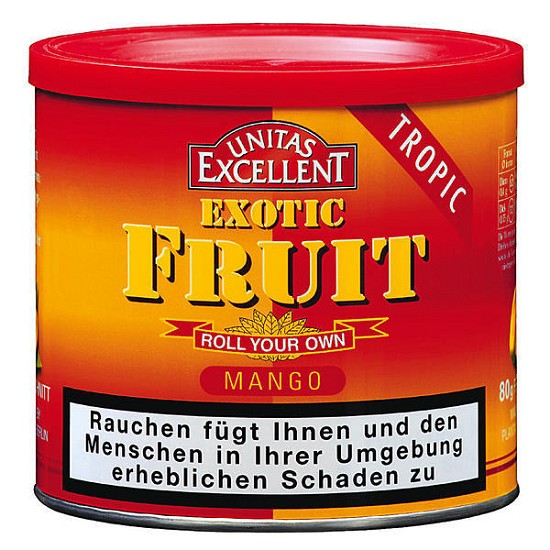 Excellent Exotic Mango ist einer der beliebtesten aromatisierten Tabake. Full Flavour American Blend Feinschnitt mit dem Aroma reifer Mango-Früchte. Ein exotischer Genuß der sich hervorragend zum Drehen eignet.