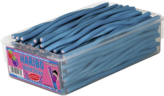 HARIBO Balla Stixx sind aromatisch gefüllte, längliche Fruchtgummi-Konfektstangen