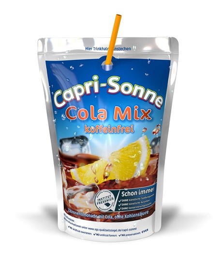 Pfandfreies Erfrischungs-Getränk, in der Geschmacksrichtung Zitronenlimonade mit Cola in einem praktischem Trinkbeutel inklusive Trinkhalm, koffeinfrei und ohne Kohlensäure.