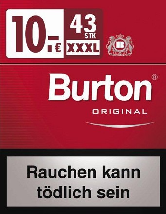 Burton Cigaretten in einem gigantischen XXXL Ultra Pack mit 43 Zigaretten für glatte 10 €. Neuartig mit Trendgespür, Herausragende Tabakqualität im Vorratspack.