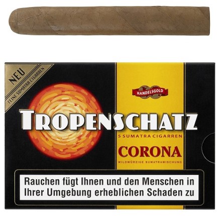 Die neuen Tropenschatz 421 F Zigarren sind feine Fehlfarben-Zigarren (preiswerte Qualität aufgrund unterschiedlicher Farbnuancen) mit Sumatra-Deckblatt. Der unverwechselbare Charakter der Tropenschatz 421 F entsteht durch die geschmackvolle, würzige Tabakmischung.