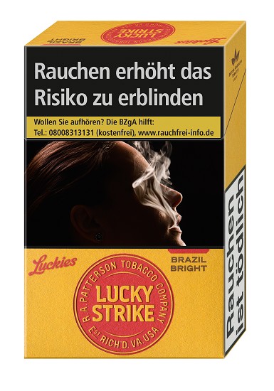 Die neue Lucky Strike Brasil Bright steht für das einzigartige Full-Flavour Geschmackserlebnis der Lucky Strike. Mit ihrer auffällig leuchtend-gelben und dennoch aus nachhaltiger Forstwirtschaft hergestellten Packung, setzt sie sich deutlich vom bisherigen Angebot der Zigaretten ab und bringt nicht nur neuen Schwung, sondern auch Farbe in das Wachstumssegment Zigaretten ohne Zusätze. Der einzigartige Geschmack der Lucky Strike Brasil Bright entsteht durch die Kombination mit sonnig-aromatischen Tabaken aus Südbrasilien.